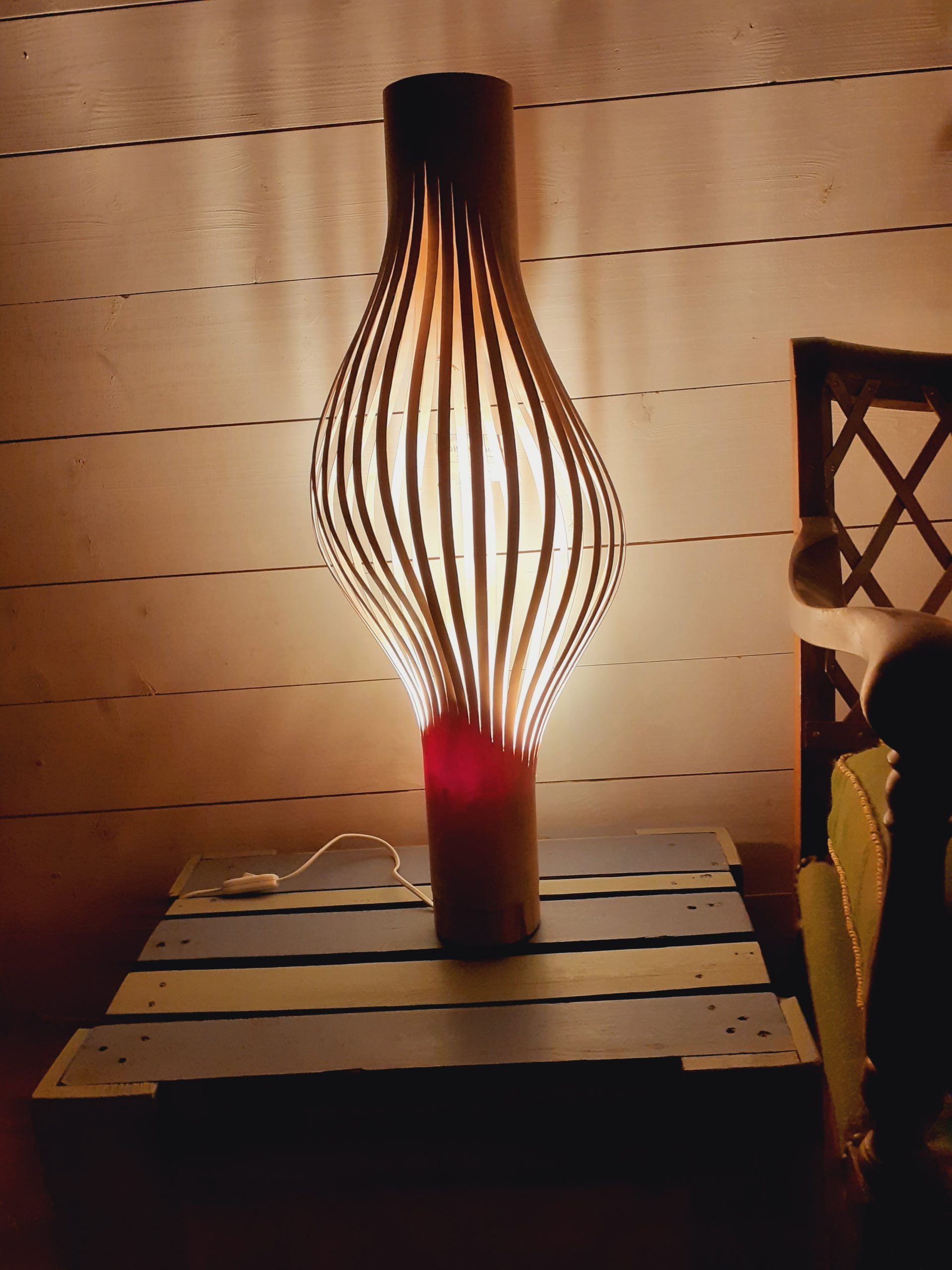 Création artisanale, entièrement fait à la main dans mon atelier. Ainsi vous aurez une pièce unique.Lampe bois à poser.